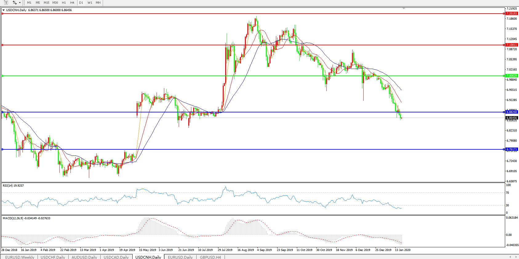美元兑人民币USDCNH    日线图: