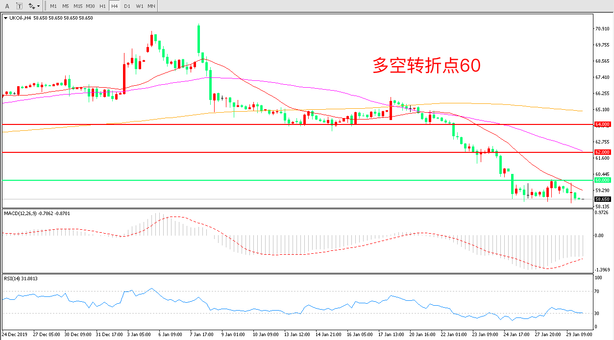 交易策略:在60.00之下看跌,目标57.00    55.00