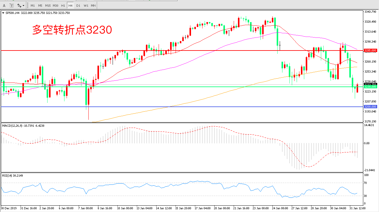 交易策略:在3230.00之下看跌,目标3200.00          3150.00