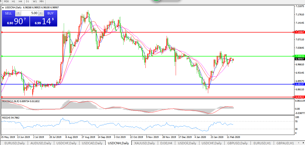 交易策略: 在7.0000之下,看跌,目标价位为6.8820,然后为6.7600。