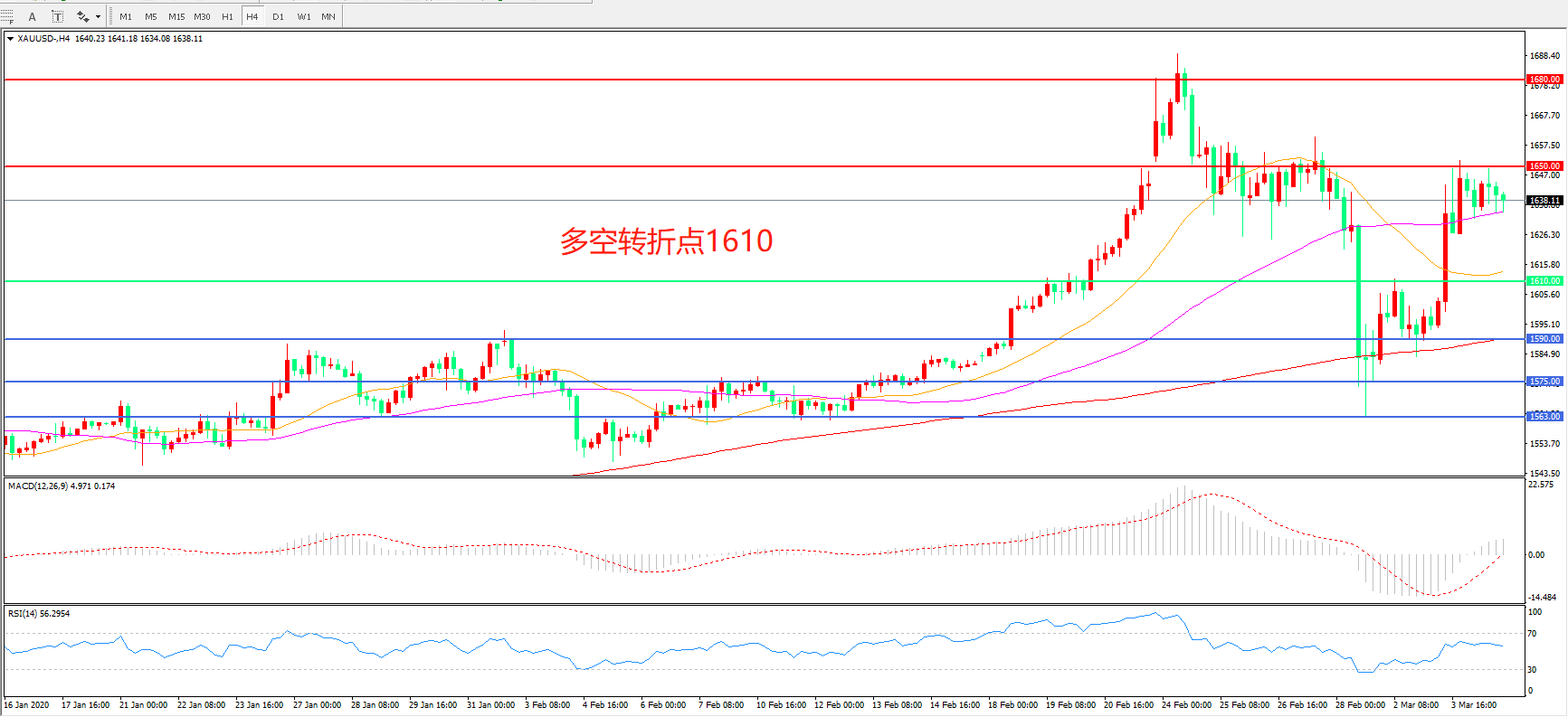 交易策略:在1610.00之上看涨,目标1650.00   1680.00