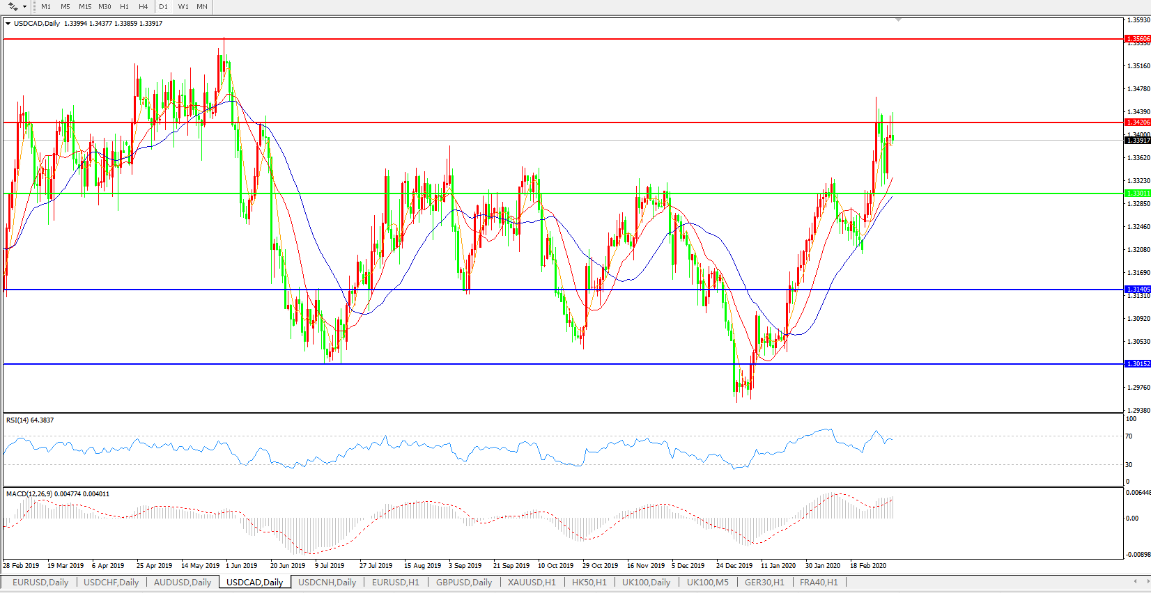美元兑加元USDCAD    日线图: