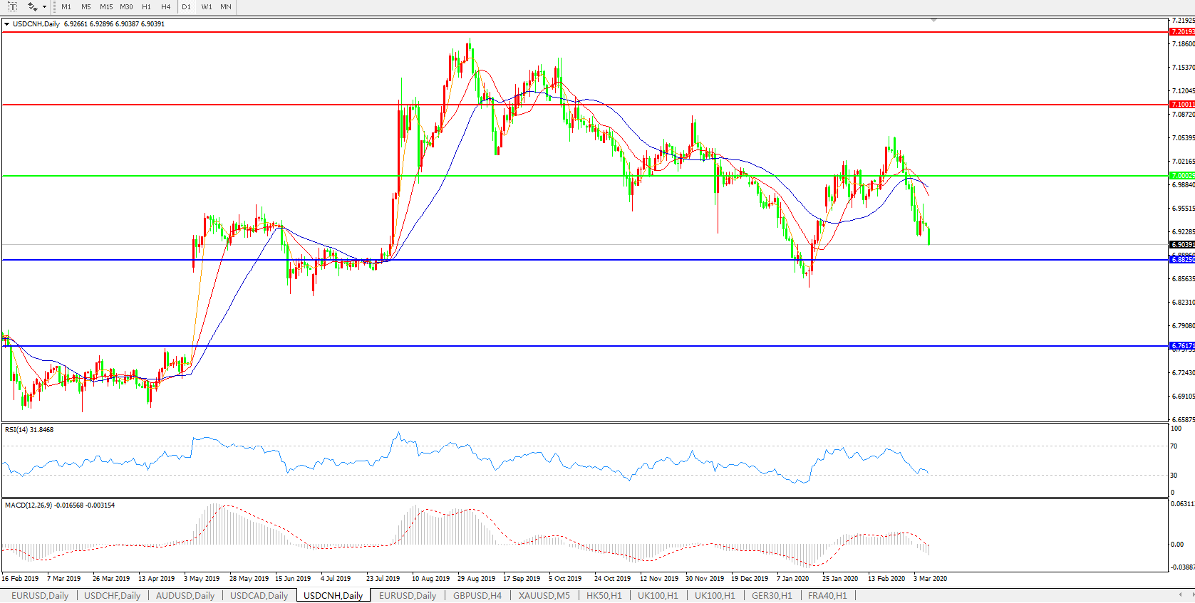 美元兑人民币USDCNH    日线图: