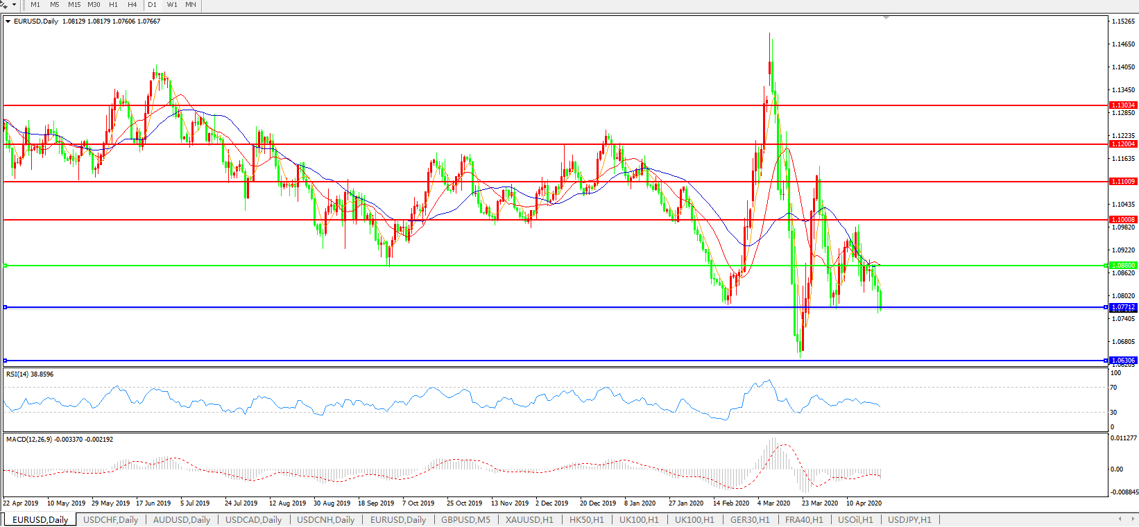 技术面简析:日图均线延续逐步走弱,汇价开始加速下行,MACD运行于0轴下方且量能持续放量 ,RSI缓步走低,预计短期汇价大概率将进一步下行。