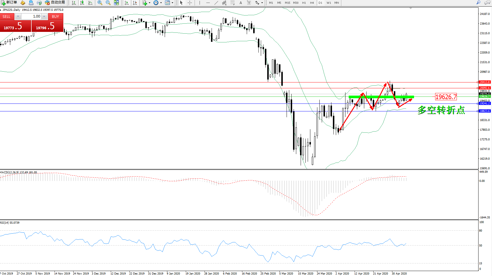 日经225指数57日(周四)收盘上涨12.15点,涨幅0.06%,报19631.50点。日内亚洲股票市场有所承压,避险情绪并未消散,全球市场情绪再度转暖,一方面投资者对于发达经济体恢复经济正常运行的预期进一步升温,另一方面,美国失业人数大幅增加的状况也已经被市场提前消化,因此,大家更关注的是疫情过后就业与经济活动恢复的前景。日本央行在今日购买了20亿日元的日本房地产投资信托基金(REITs),日本央行提出购买3400亿日元1-3年期日本国债。