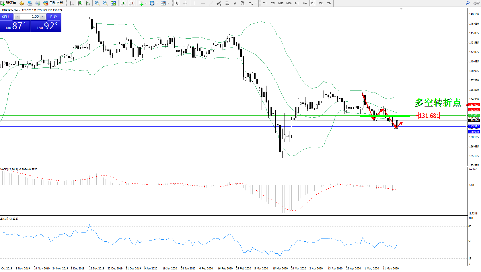 交易策略:131.681下方看跌,目标129.912128.980