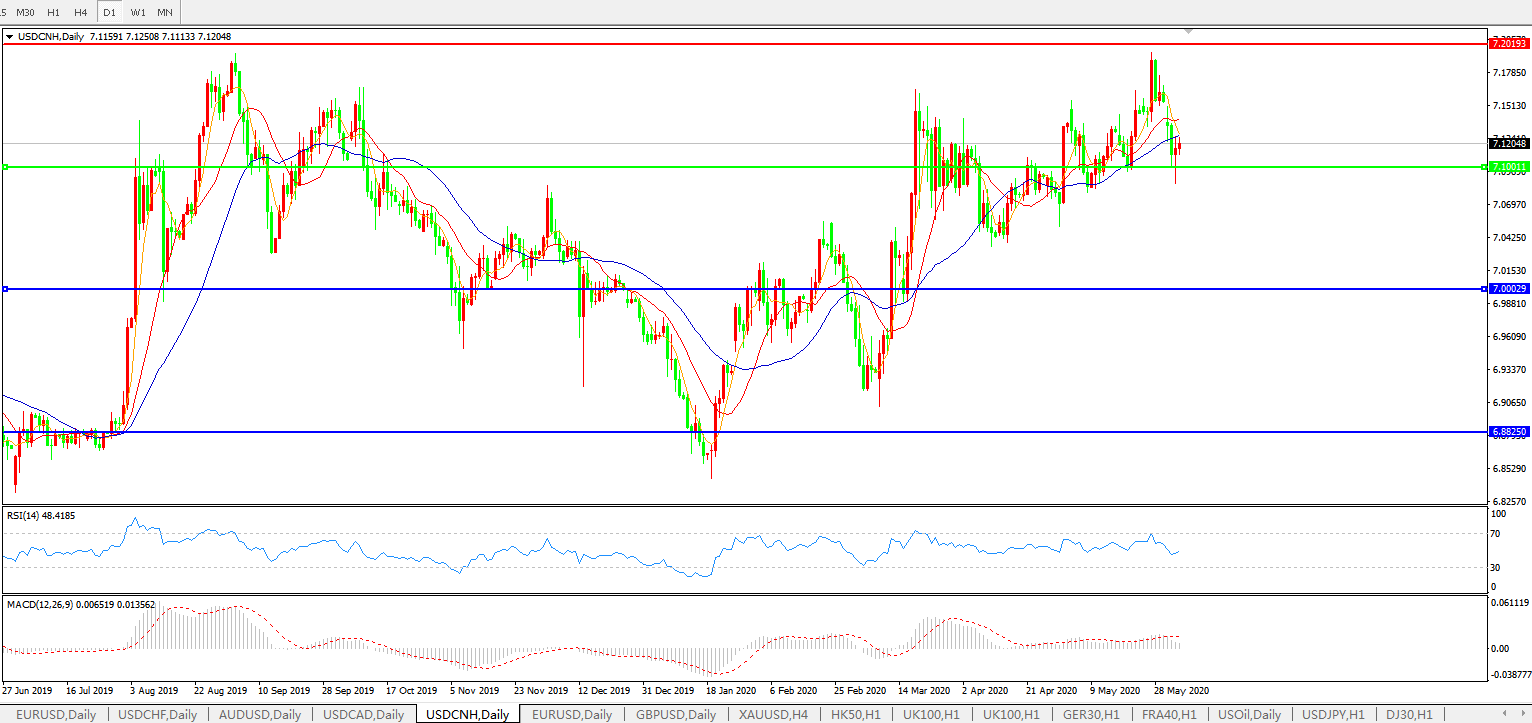 交易策略: 在7.1000之上,看涨,目标价位为7.2000,然后为7.3000。