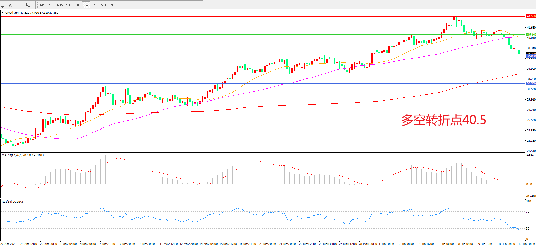 周四(6月11日),美联储对经济悲观预期打压了市场情绪,疫情在美国多地卷土重来令担忧加剧,全球经济前景不明打压了投资者对需求复苏的预期。布伦特原油大幅下跌,收报38.30美元/桶。