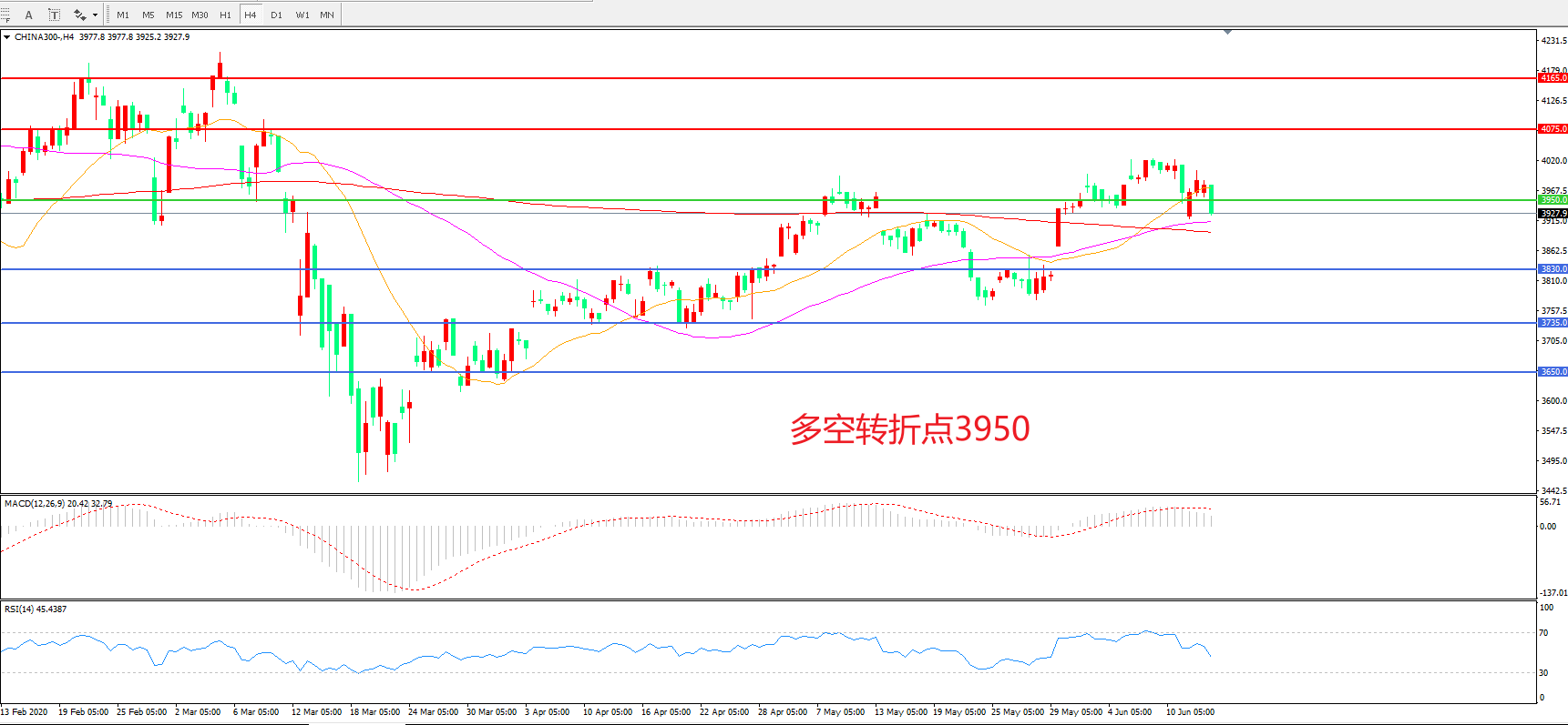 周一(6月15日),A股三大股指涨跌不一,沪深300 开盘后震荡拉升,一度翻红, 然而,风云突变。由于外盘突然砸盘,A股由涨转跌,沪深300大幅下挫,收报3927.9点。随着美联储宣布将进一步采取措施支持市场对抗新冠疫情后,美股V型上演反转,小涨收盘,外围风险的缓解对日内行情有一定的提振作用。