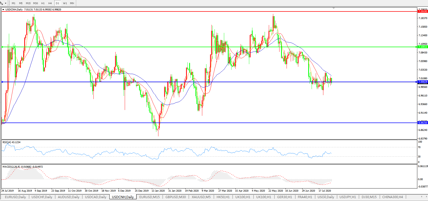 交易策略: 在7.1000之下,看跌,目标价位为7.0000,然后为6.8820。