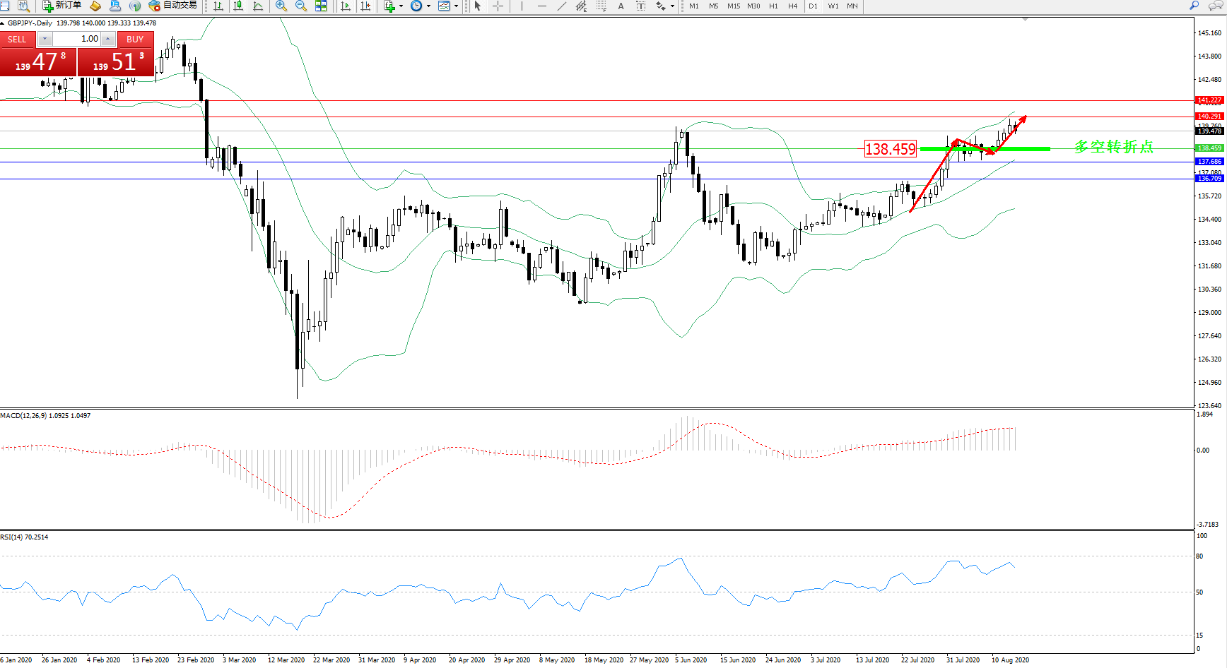 交易策略:138.459上方看涨,目标140.291、141.227