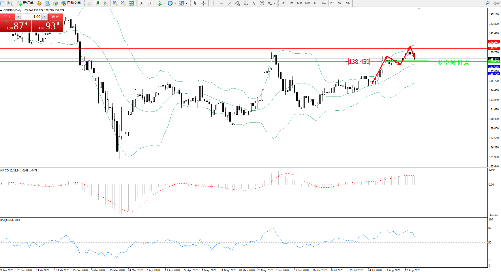 交易策略:138.459上方看涨,目标140.291、141.227