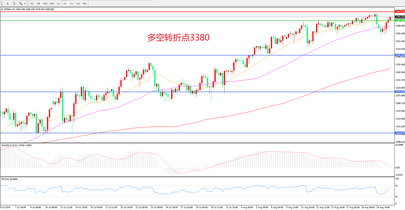 交易策略:在3380.00之下看跌,目标3300.00         3215.00