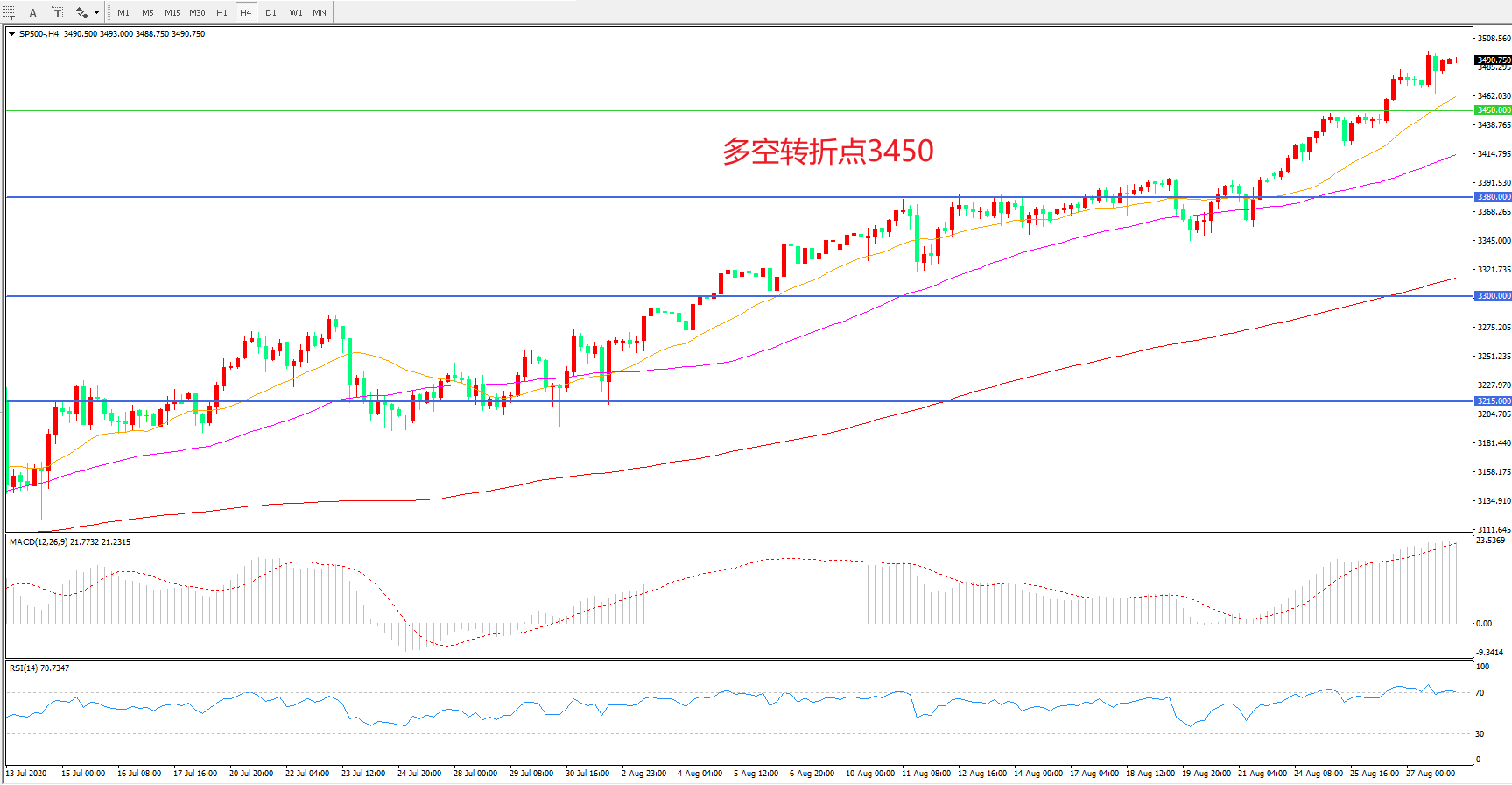 交易策略:在3450.00之上看涨,目标3530.00         3600.00
