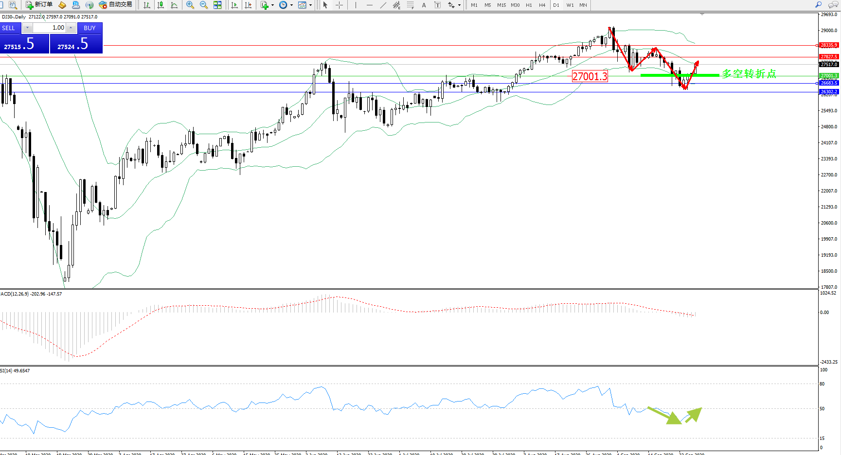道琼斯指数9月28日(周一)收盘上涨410.10点,涨幅1.51%,报27584.06点。美股三大指数集体收涨,银行股领涨,有关美国政府推进刺激法案谈判的迹象一直是最近股市的利好因素,美联储也在持续给市场提供流动性。美联储的作用令市场几乎不可能有太悲观的情绪,随着逐步意识到我们必须与新冠病毒共存一段时间,市场变得更加安心了,在美国大选之前,针对新一轮刺激支出仍可能达成协议。在连续下跌四周之后,美国股市出现反弹,投资者目前观望周二举行的美国总统大选首轮辩论。同时,越来越多人担心,随着许多刺激计划到期,遏制了消费者支出,经济复苏将会放缓。周日,美国众议院议长佩洛希表示,随着磋商继续,她认为可以与白宫就新一轮新冠救助计划达成协议。