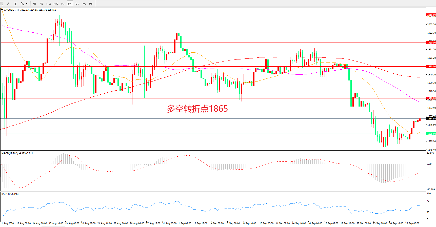 备选策略:在1865.00之下看跌,目标1835.00   1800.00