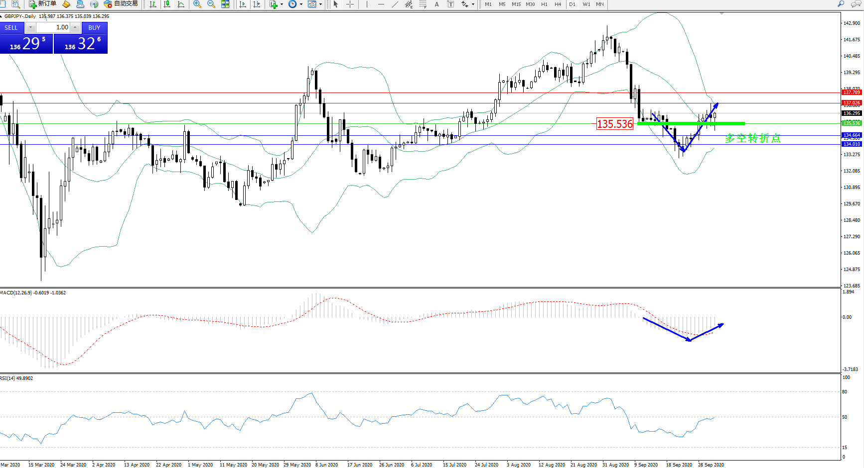 英镑兑日圆维持震荡回升136.295附近,英国首相约翰逊自6月份以来将首次干预英国脱欧谈判;约翰逊上周六将与欧盟委员会主席冯德莱恩会谈,力争解锁协议;约翰逊和冯德莱恩将讨论双方如何可以达成有关未来贸易与安全合作关系的协议,以及各方愿意做出的妥协;此举被接近谈判的官员视为向前迈出的积极一步,这可能允许未来几天召开更加密集的谈判;虽然英国和欧盟之间最后一轮将于周五结束的预定会谈取得的进展有限,但官员们称破坏了稍早谈判的对抗情绪近几周消失了,双方有意达成协议;双方在解决长期的绊脚石问题方面取得了一些进展,官员们相信,目前有立场能够让约翰逊和冯德莱恩做出最后的冲刺。