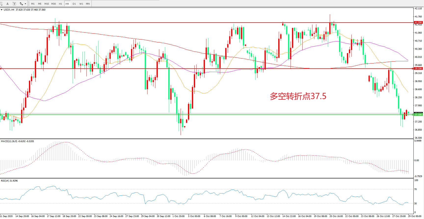 交易策略: 在37.50之下看跌,目标35.00         31.50