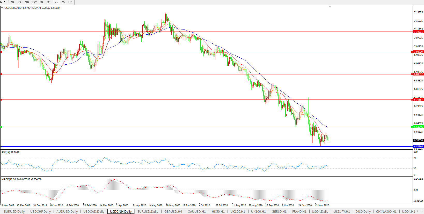 感恩节假期在即,美元兑人民币继续走弱