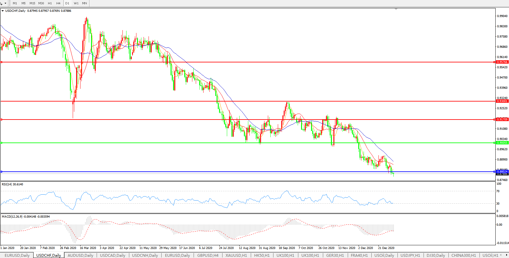 美元兑瑞郎USDCHF    日线图:
