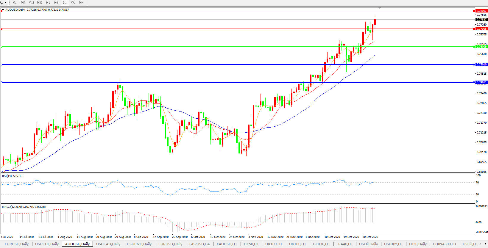 2021中国增长持续,澳元兑美元持续上攻