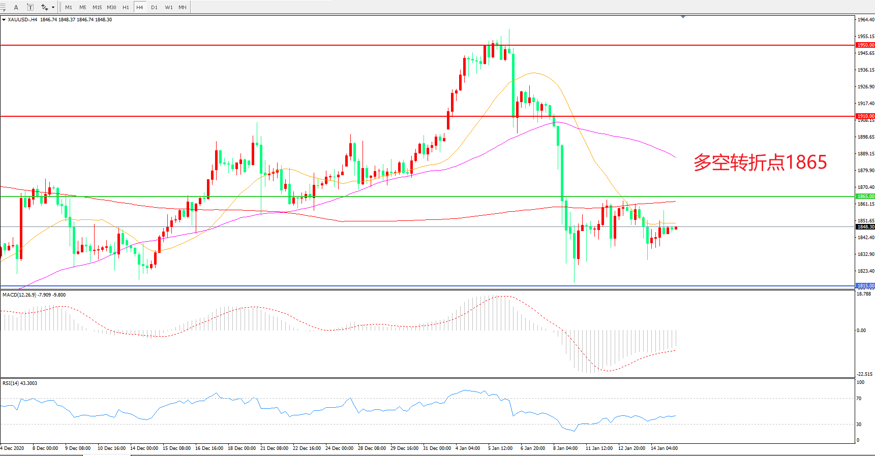 交易策略:在1865.00之下看跌,目标1815.00 1765.00