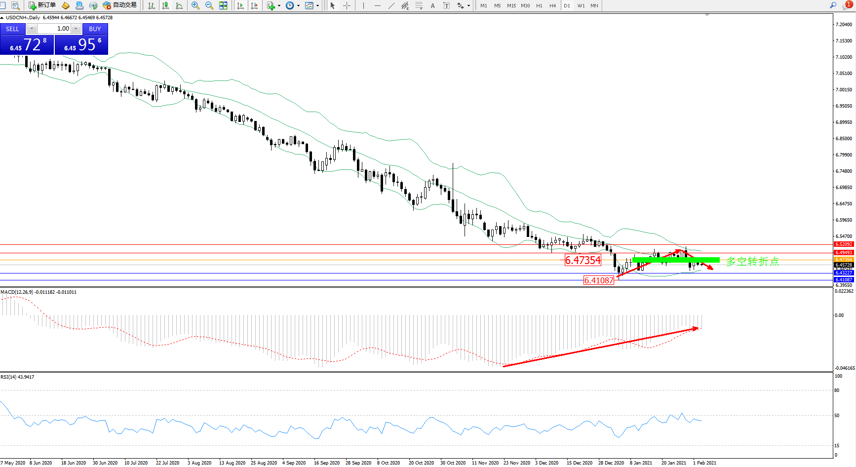交易策略:6.47354下方看跌,目标6.43227、6.41087