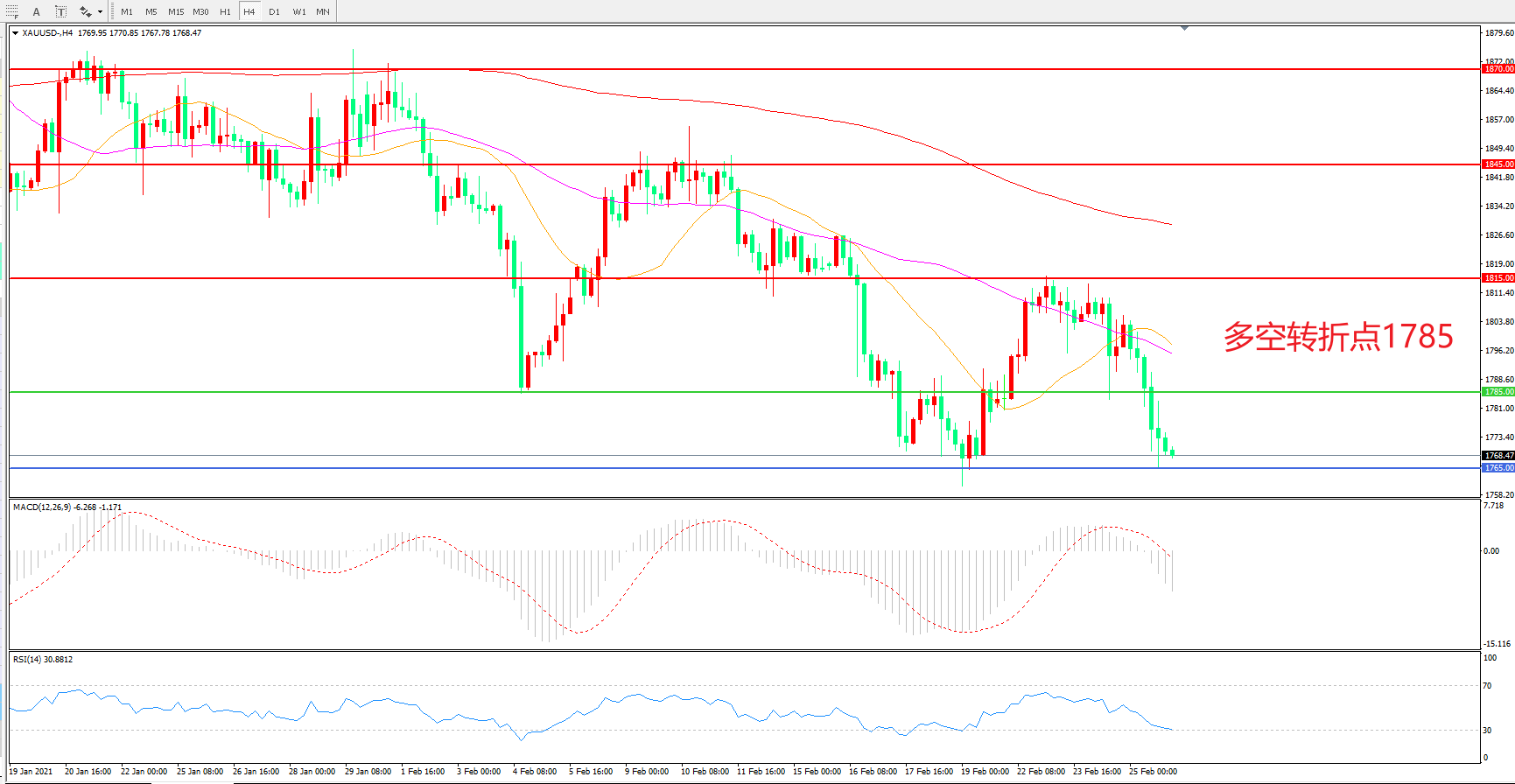 交易策略:在1785.00之下看跌,目标1765.00    1730.00