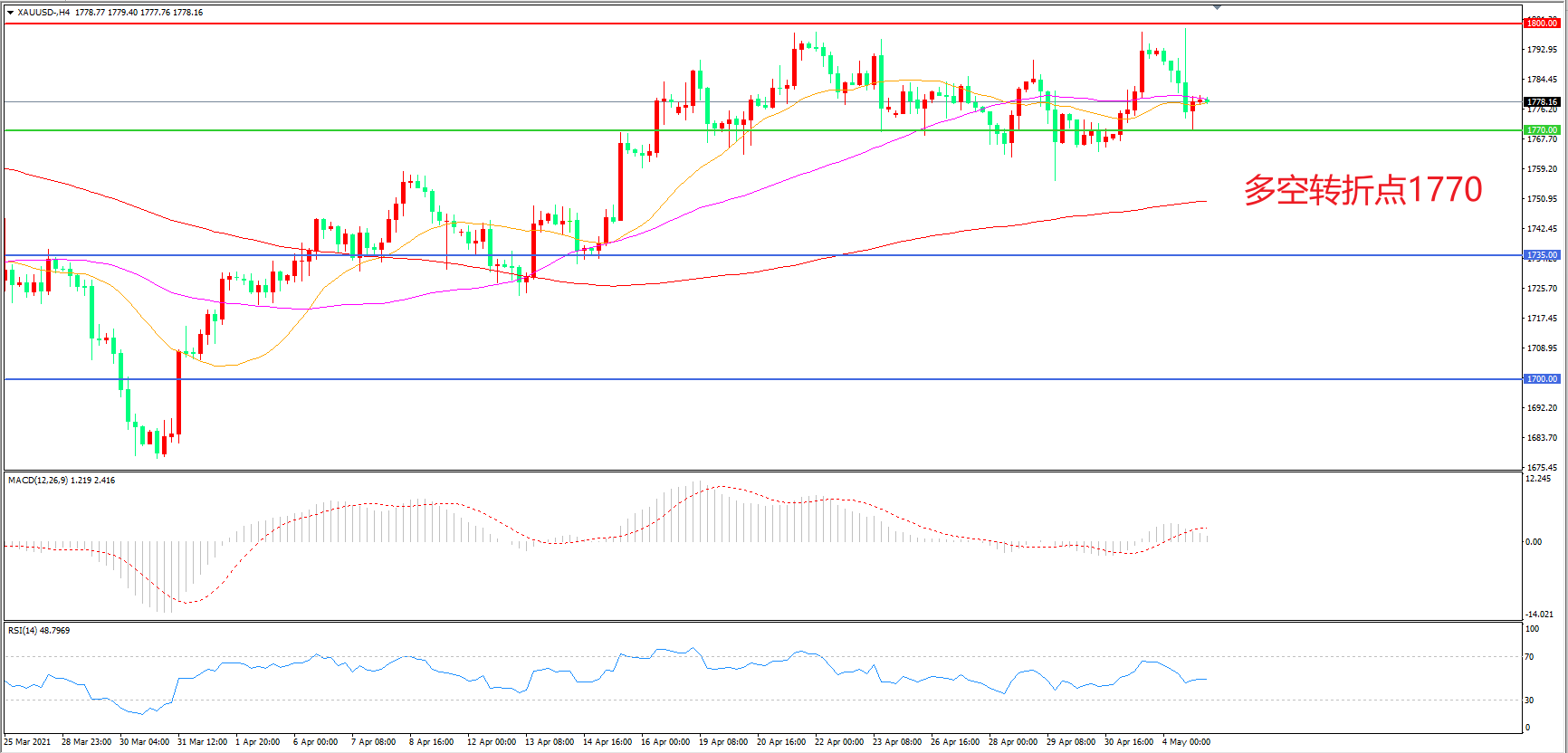 多空转折点:1770.00