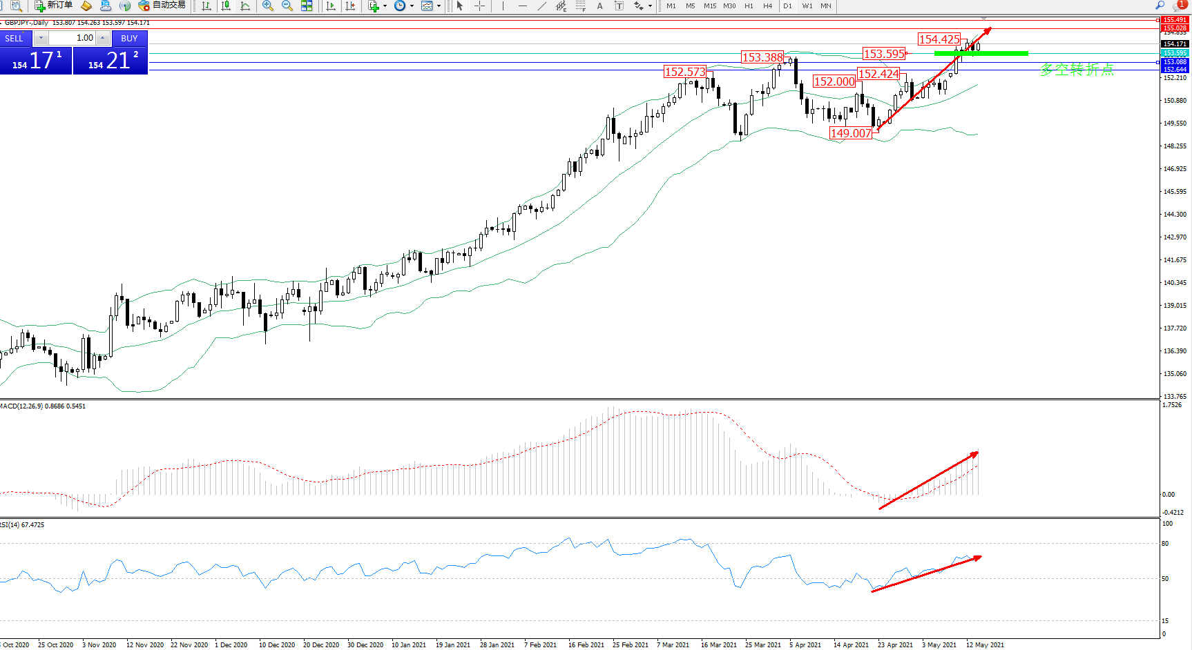 英镑兑日圆高位154.171附近震荡,英国疫苗部署大臣Zahawi称,我们可以灵活部署疫苗,以应对印度新变种病毒。英国经济事件清淡,英国公布4月RICS住房价格指数,该数字上升75%,远好于期值62%;英国开发大臣夏尔马表示,人类活动正在危及我们的星球,如果还不采取行动,气候变化将变成灾难。我们必须在本世纪中叶将排放量降至零。各国应该提出2030年的减排目标。我们希望结束国际煤炭融资。我们呼吁各国承诺到2040年所有新车实现零排放。