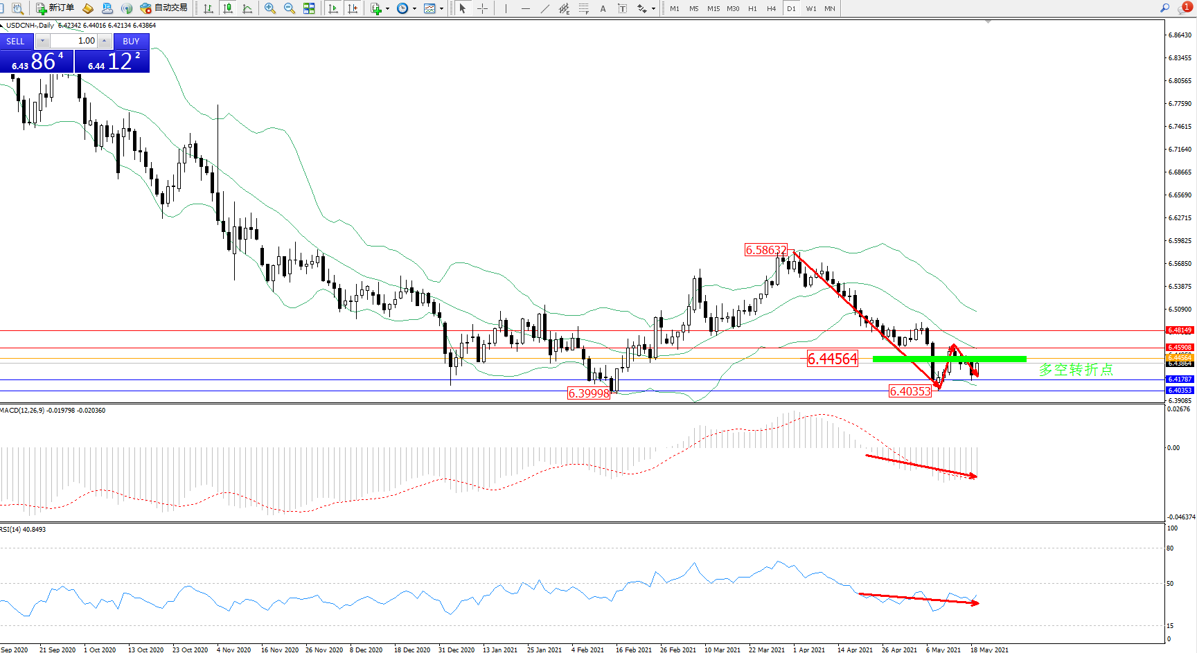 美元人民币USDCNH——日K线图显示: