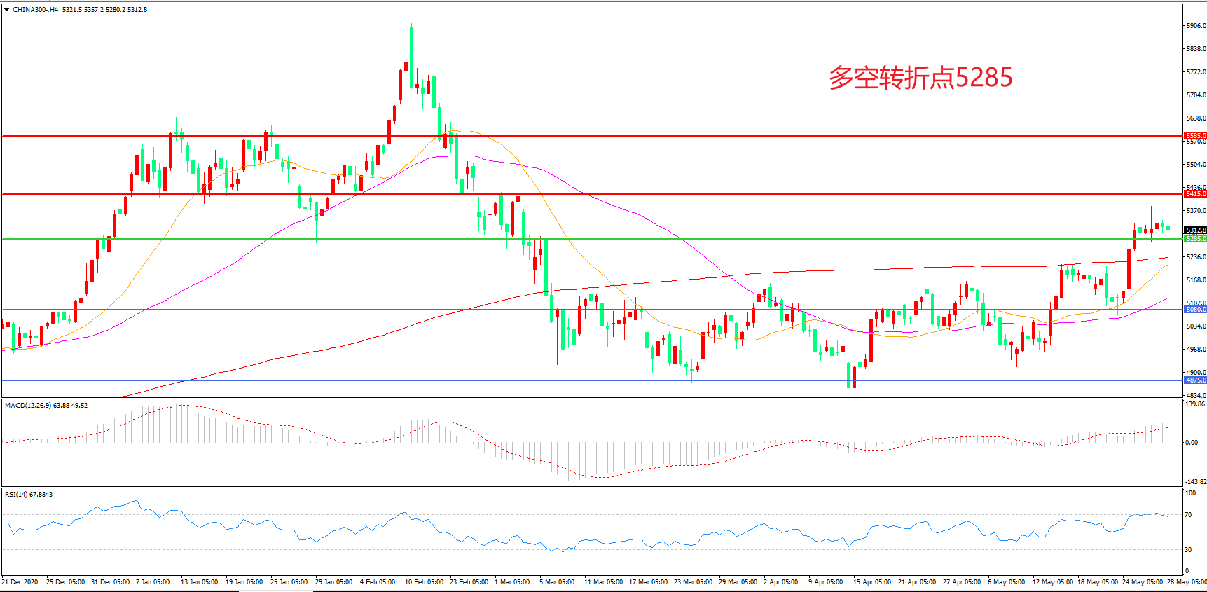 上周五(5月28日),A股市场虽然不强,但多空力量较为均衡。午后开盘,北向资金突然猛拉,但很快就反手做空,引发A股大跳水,沪深300止步四连阳,收报5312.8点。两市成交额再破万亿。从外围的消息来看,可能是离岸人民币汇率创出阶段新高之后,多头感受到了贬值压力,选择落袋为安。