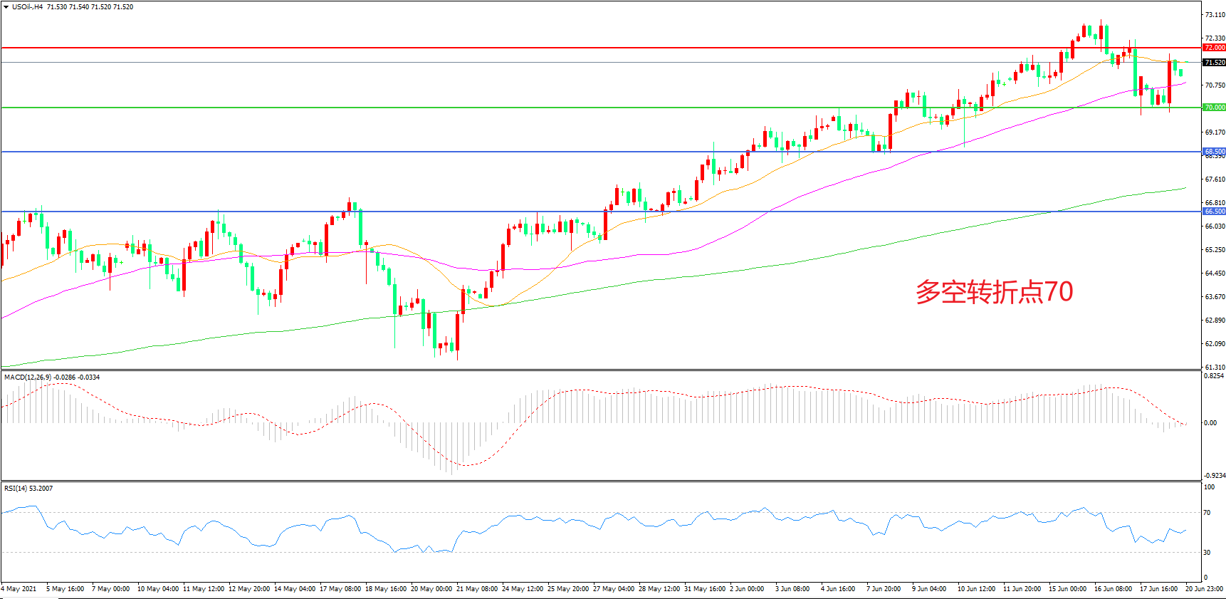 交易策略:在70.00之上看涨,目标72.00    75.00