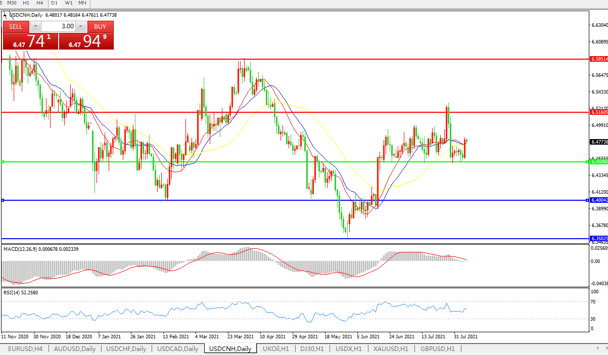 备选策略:在6.4505之下,看跌,目标价位为6.4000,然后为6.3500。