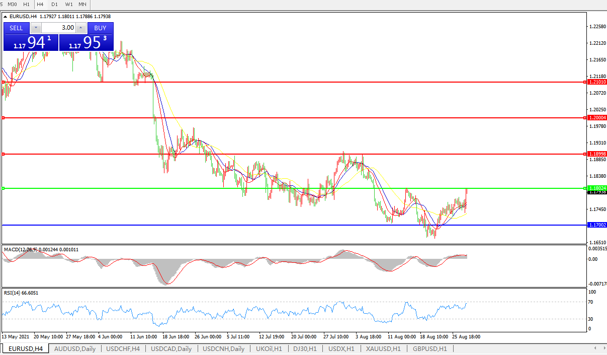 备选策略:1.1800下方看跌,目标1.1700、1.1600