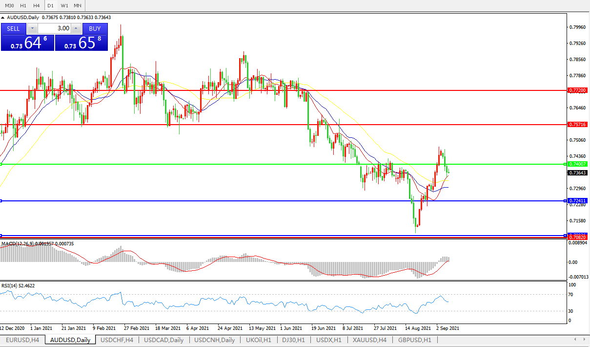 交易策略:0.7400下方看跌,目标0.7240、0.7080