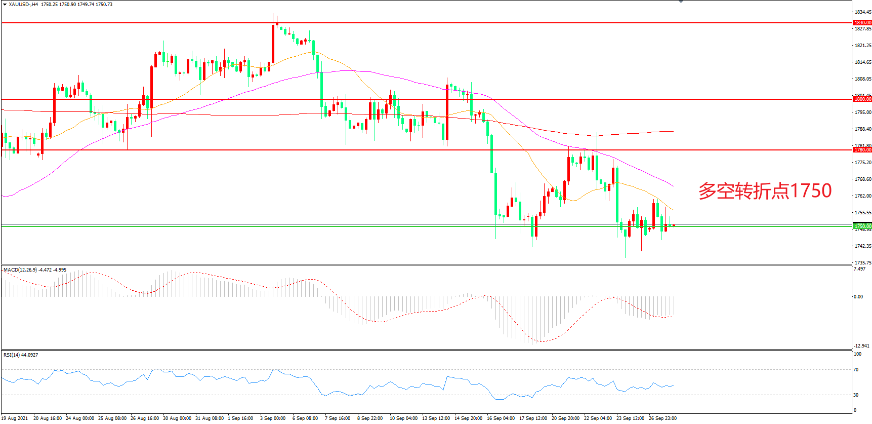 交易策略:在1750.00之下看跌,目标1720.00 1700.00