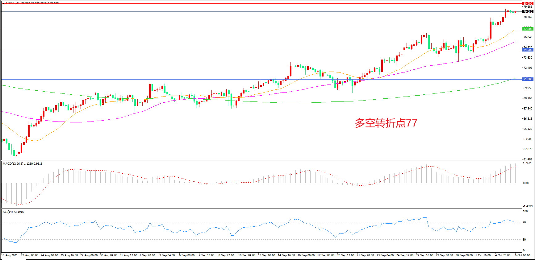 交易策略:在77.00之上看涨,目标80.00                83.00