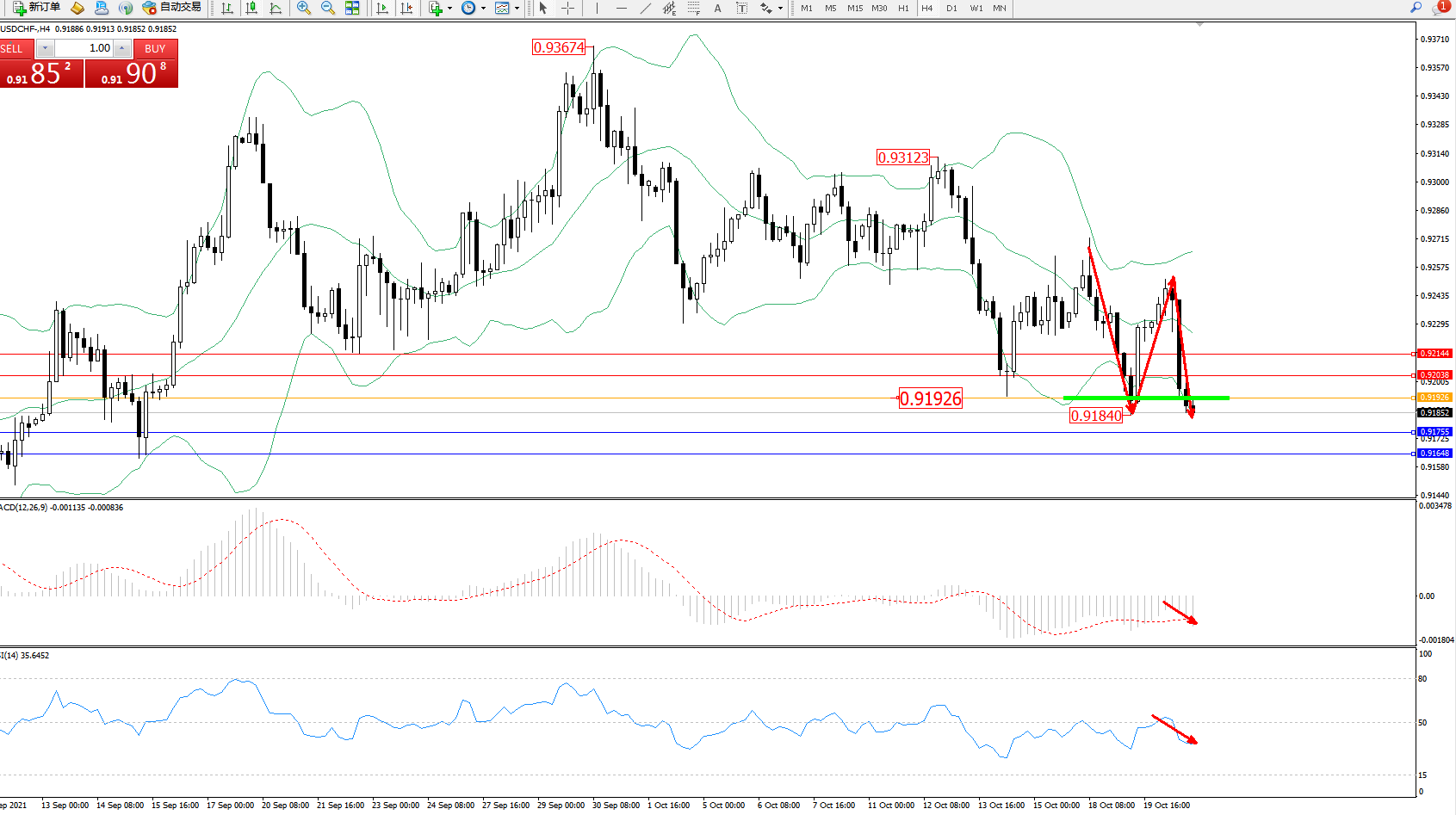 交易策略:0.91926下方看跌,目标0.91755、0.91648