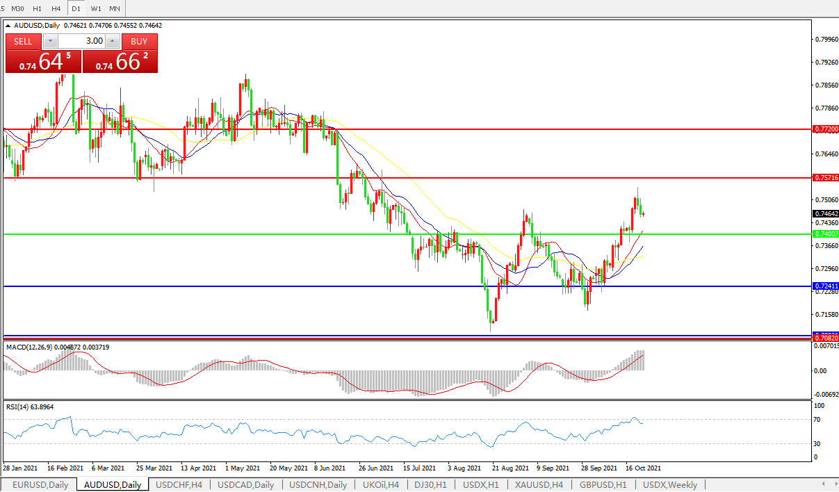 交易策略:0.7400上方看涨,目标0.7570、0.7720