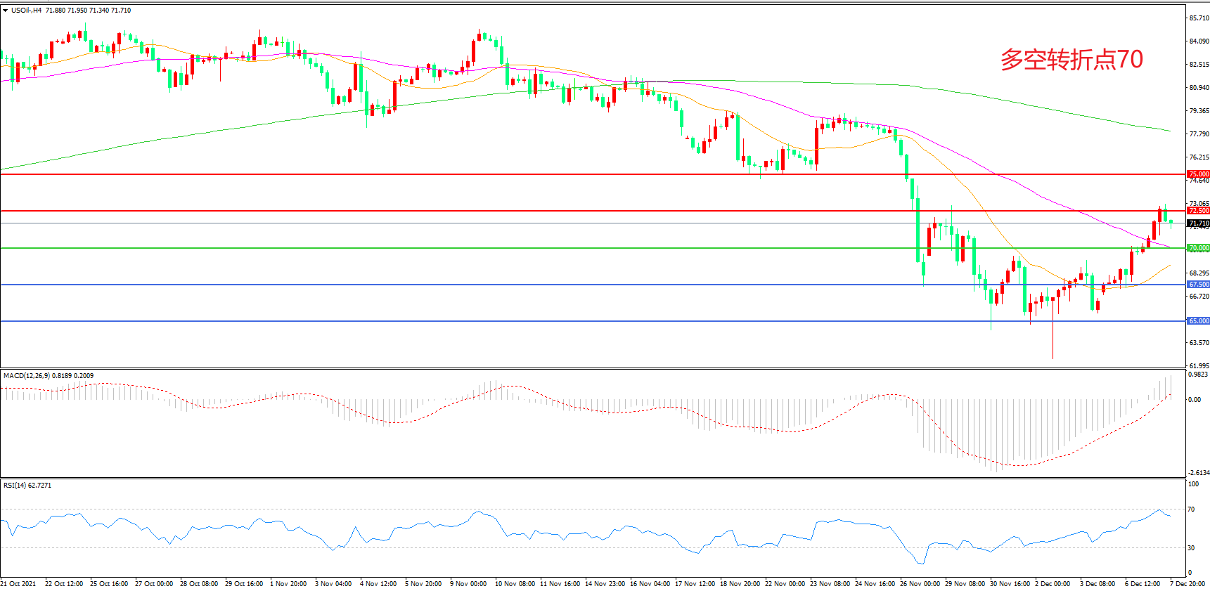 多空转折点:70.00