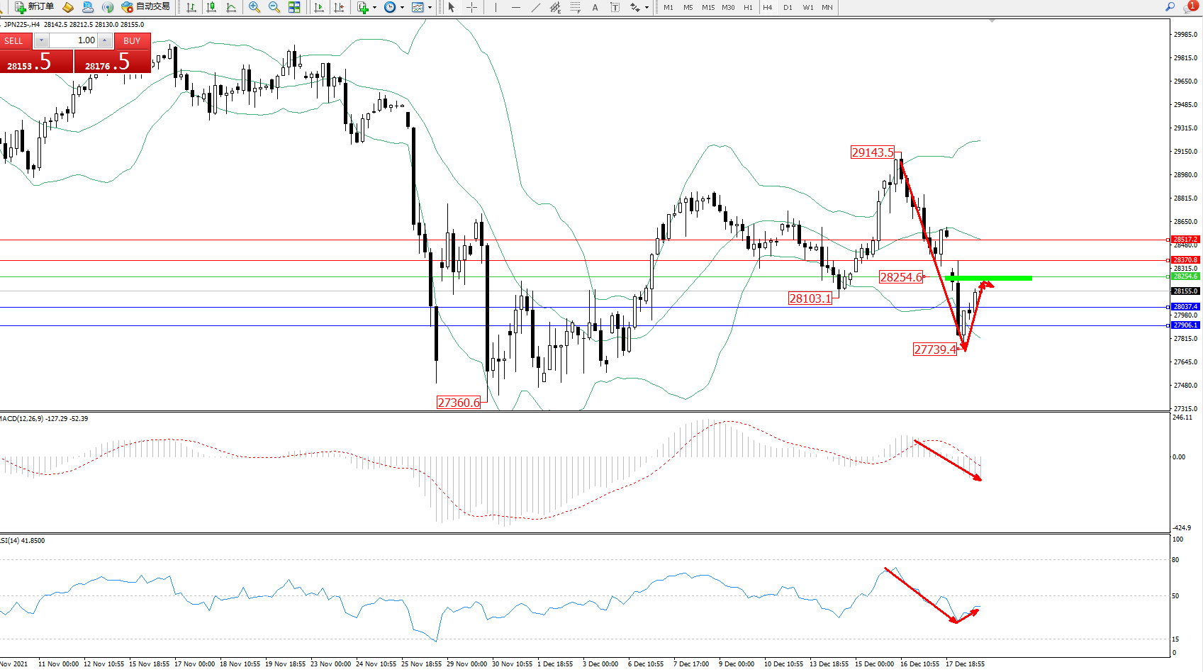 日经指数JPN225——4小时K线图显示: