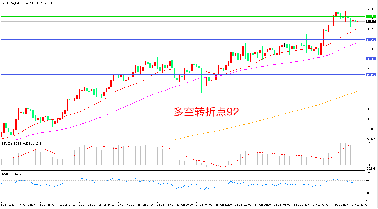 交易策略:在92.00之上看涨,目标95.00        98.00