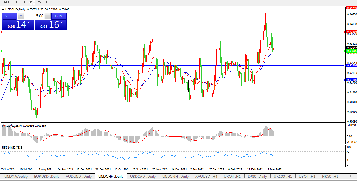 交易策略:0.9300上方看涨,目标0.9380、0.9500