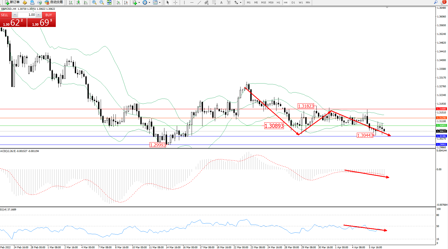 英镑美元GBPUSD ——4小时K线图显示: