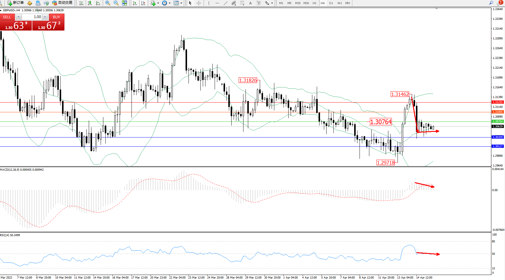 英镑美元GBPUSD ——4小时K线图显示: