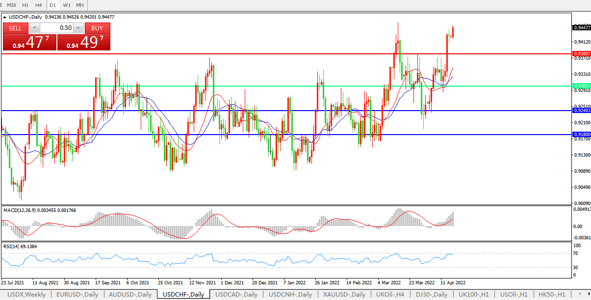美元兑瑞郎USDCHF 日线图: