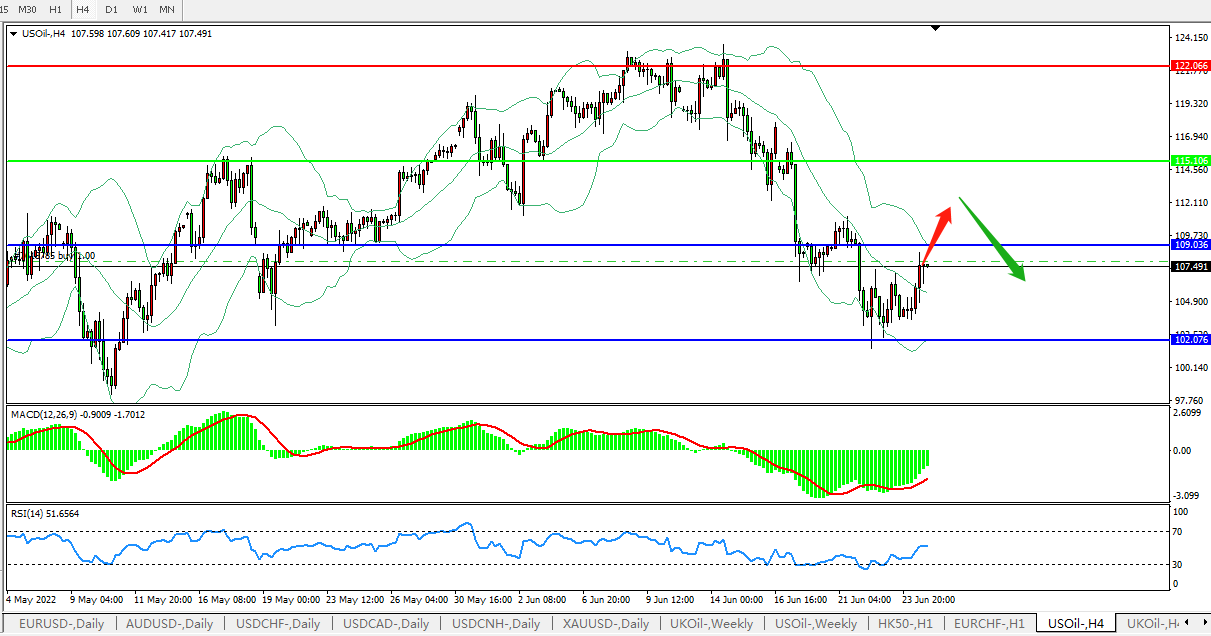 美国原油USOil 4小时图