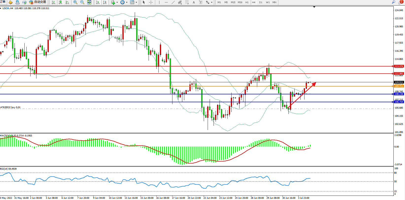 原油USOil——4小时K线图显示: