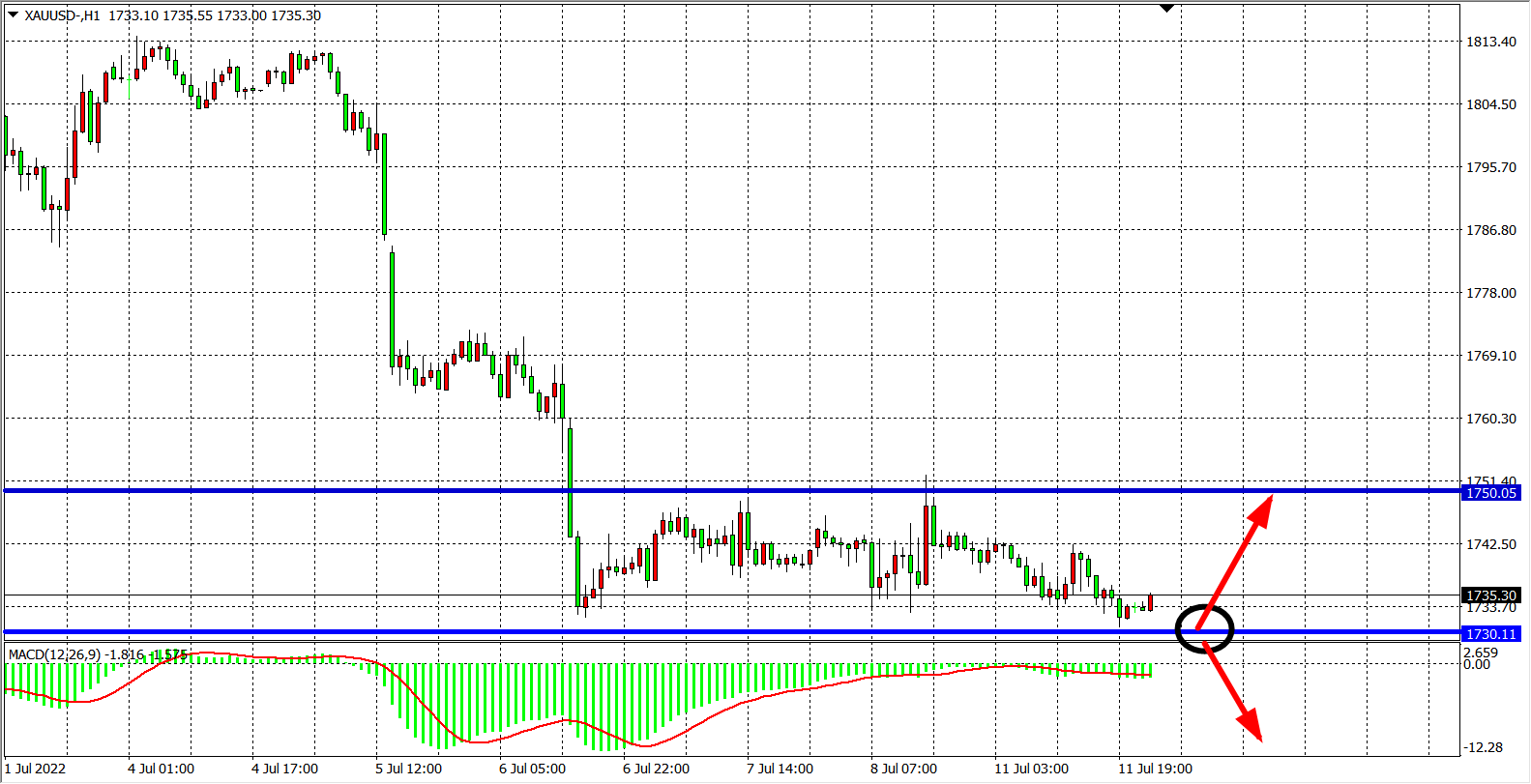 周一(7月111日)上周非农数据走好的影响持续发酵,美联储继续加速以及加大幅度加息的预期飙升推升美指创下逾20年来新高。受强势美元影响,现货黄金大幅下行,盘中一度下探1730低点,并较日高一度大跌14美元,最终收跌0.47%。